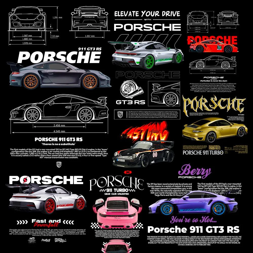 Each design is carefully created to reflect the sleek lines, powerful stance, and timeless appeal associated with legendary models from Porsche. Whether you're designing for automotive fans, streetwear brands, or racing culture niches, these graphics bring a bold and sophisticated edge to any product.