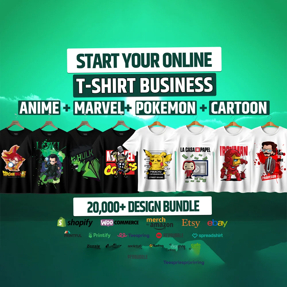 20,000+ Cartoon, Anime & Avenger T-Shirt Design Bundle