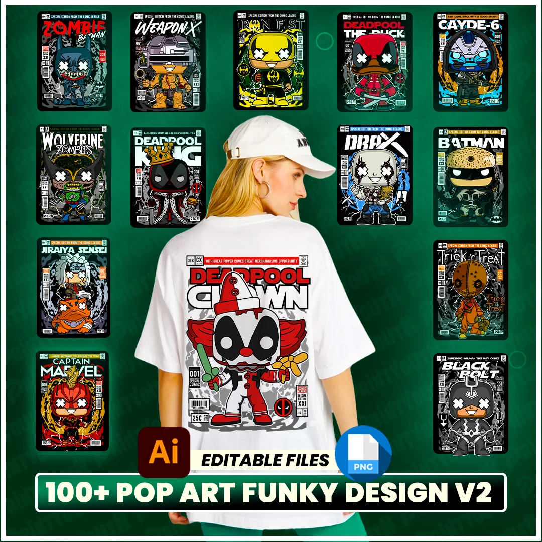 100+ Pop Art Funky V2 T Shirt Design Bundle